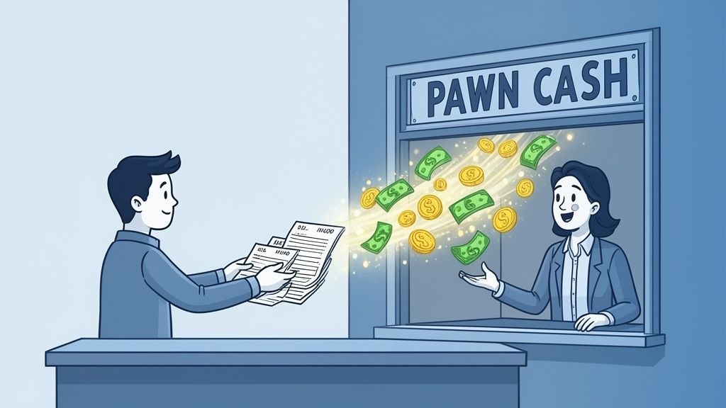 At its core, invoice factoring is like a pawn shop for your accounts receivable. But instead of a guitar, you're selling an asset—your unpaid invoices—at a small discount to get cash in your hand right now.